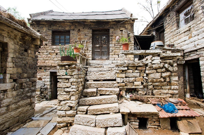 进入卧铺村,犹如进入一座石头城堡,这里的房子是石头的,畜棚是石头的,狗窝、鸡窝是石头的,就连一些日常器具都是石头的。“器以石琢,皿以石凿”,就地取材,因地制宜,充分显示出卧铺人聪明和智慧。跟其他山区不同的是,这里的房子大多是二层楼,二楼住人,一楼养牲畜或做储藏室,一般由石阶直接通往二楼。因为山势高,夏天又时常云雾缭绕,这样的房屋能更好的起到防潮防水作用。