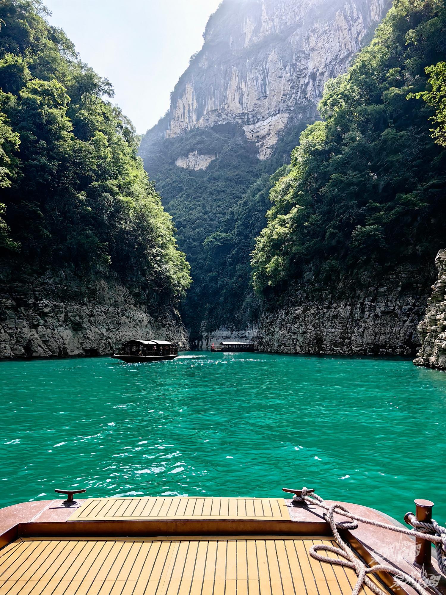 船游巫山小三峡,行船古巫溪之上,一江碧水如绸似缎,两岸青山刀削斧凿,沿途奇峰、悬棺、古栈道与攀枝吠叫的猿猴群,江风拂面,山水入画,在江上感受舟行碧波上,人在画中游的诗意慢旅。